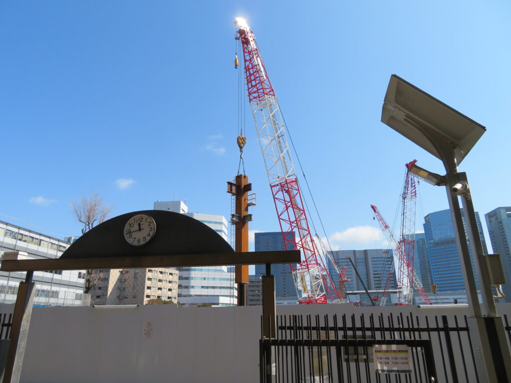 ▲高輪森公園入口より、品川駅方面再開発の様子